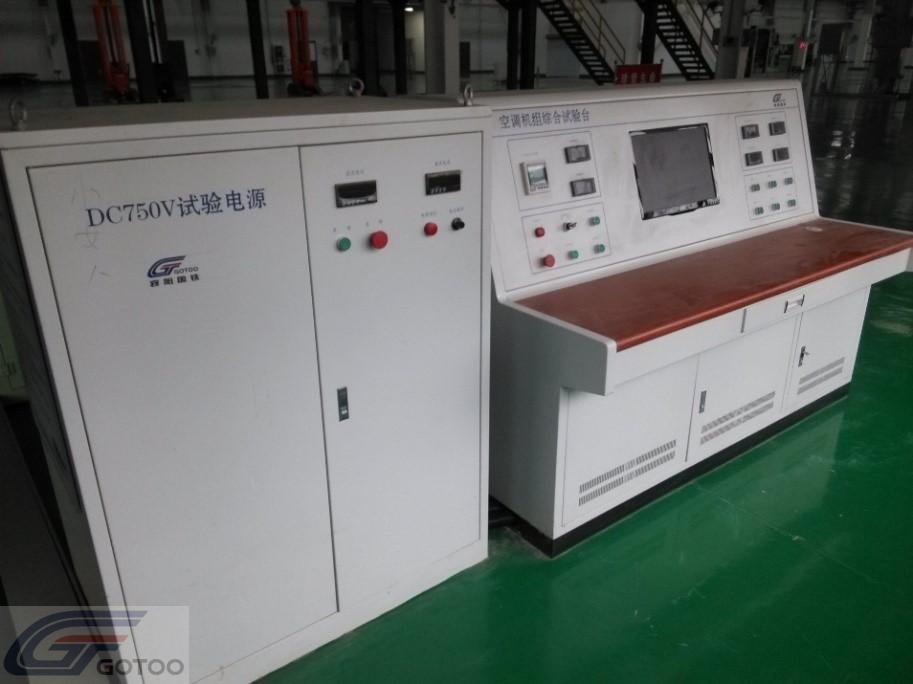 The test device consists of an air conditioning unit test bench, electrical measurement and control cabinets and electrical connection lines, including: temperature sensor, electrical parameter measuring instrument, wind speed tester, phase sequence protector, AC contact, overheat protector, air switch, operation Buttons, controllers, electrical connectors, cables and cabinets, air heaters, and computer test systems.
